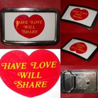 70'S★HAVE LOVE WILL SHARE★ベルト バックル★ビンテージ★FISHER USA★デッドストック★ヒッピー★ラブ&ピース★愛★平和★反戦