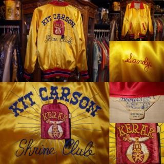 50'S★Bowler's★フリーメイソン★サテン★ボーリング★ジャケット★金赤L★ビンテージ古着★シュライン★フェズハット★秘密結社★シュライナー★