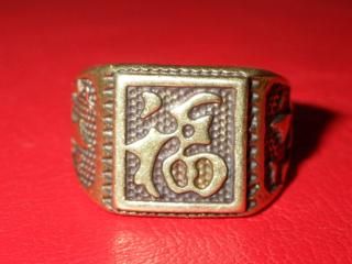 漢字★福★リング★フリーサイズ★指輪★370★15号★GOOD LUCK★ブラス★真鍮★幸運★ラッキー★縁起物★お守り★福禄寿★酒★おもちゃの指輪★トイリング