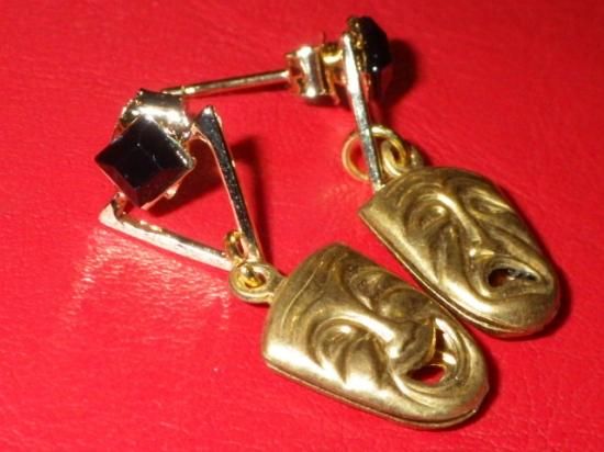 ツーフェイスのチャーム部分(ブラス素材)が当時物のビンテージ、ブラック×ゴールドピラミッド×スクエアーチャーム&ピアスポスト&キャッチ部分&丸カンが現行の未使用品になります♪