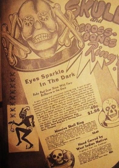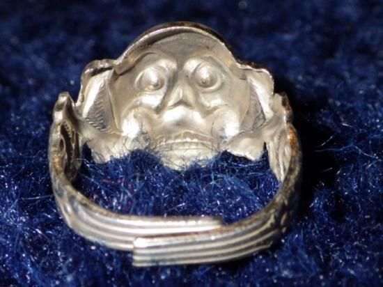 当時のスカルリングもたくさん見て販売してきましたが、こちらのタイプは中でも顔の良いタイプのスカルで、当時のアメリカで販売され、幸運のお守りとして爆発的人気がありました、当たり前ですが表情もとてもよく、最高にCOOLです♪
