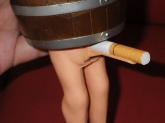 タバコを中に入れ、バレルマンの樽を上に持ち上げると股間からタバコが出てくるお馬鹿なギミック♪