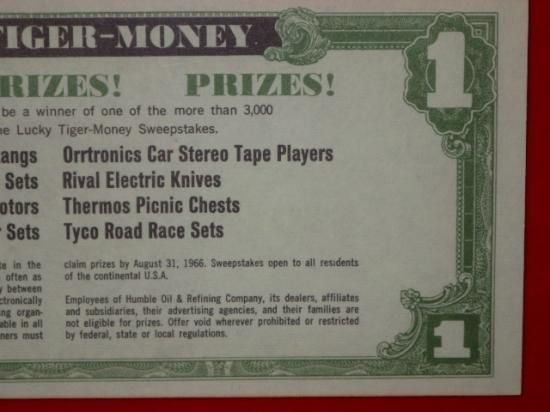 1911年にテキサス州ハンブルで設立されたアメリカの石油会社ハンブル オイル、1966年にプロモーションとして、オイルを満タンに給油するたびに配布されていたクジになります、賞品には、フォード マスタングの実物からTyco社製のロードレースセット(おもちゃの車を走らせるアレ)まで、あらゆるものが含まれておりました、リストを見ても今となってはビンテージになっててお宝山盛りですね♪