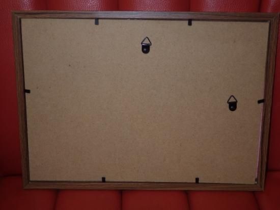 2枚入れて裏表が見えるようウッドカラー×レッドカラーベルベットのフレームに入れて壁掛け仕様にしております、フレームサイズで縦:23.1×横:31.7×厚み:1.0cm、おまけのフレーム付きでの販売になります♪