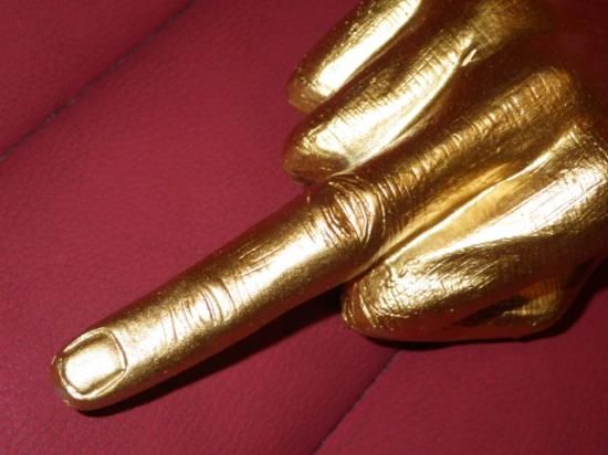 手の甲を相手に向けて中指を立てFuck You!(くたばれ、クソ野郎、クソったれ)と相手を強烈に侮辱する卑猥なジェスチャー♪