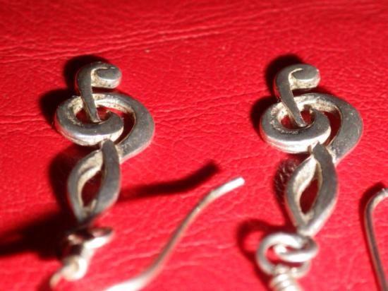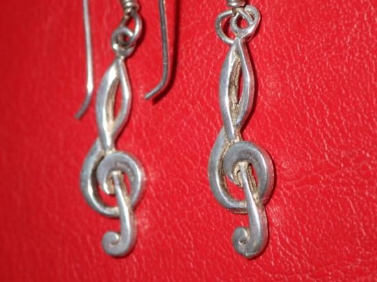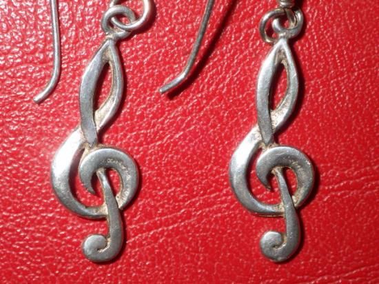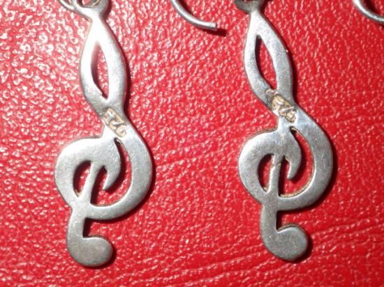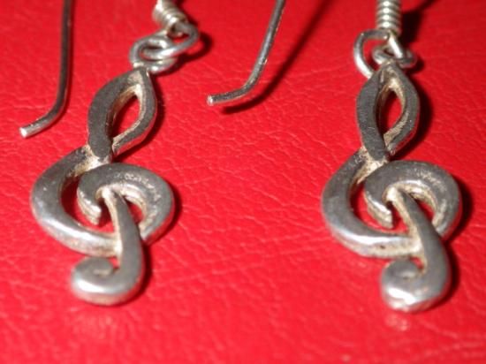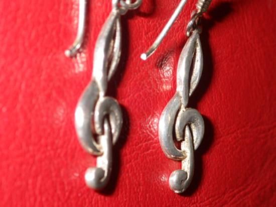 素材はスターリングシルバー、左右の2点セット、サイズはフックを除いたト音記号部分のサイズで縦:2.3cmくらいです♪