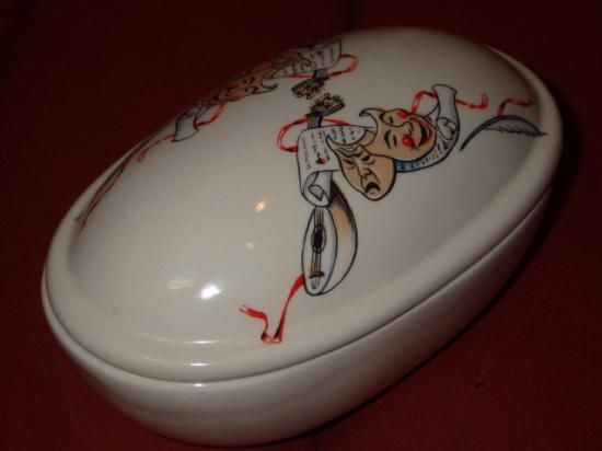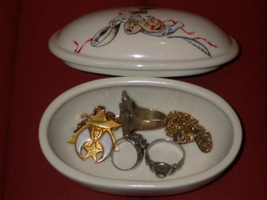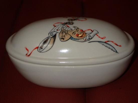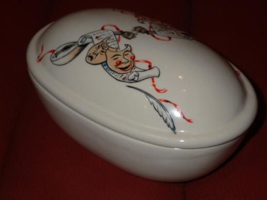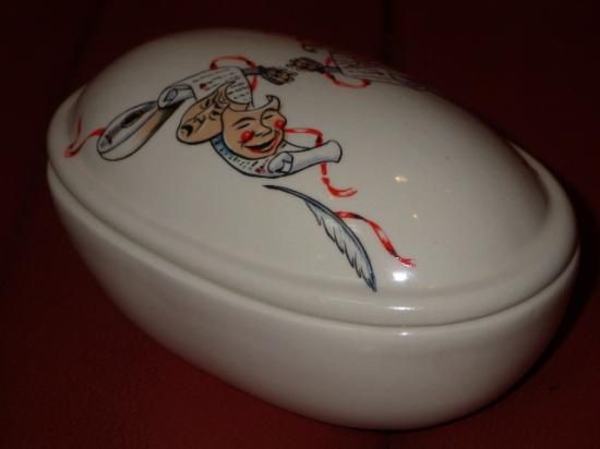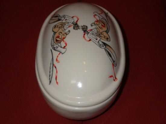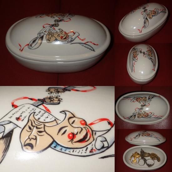 フィフティーズを代表する人気モチーフ、ツーフェイスのトリンケットボックス/カバー付き小物入れです♪