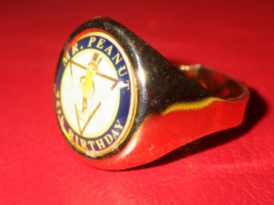 当時、アメリカで販売されていたおもちゃの指輪、1906年設立のPlanters/プランターズ社のキャラクター、古き良き時代のアメリカ代表する企業キャラクターの一つ、ミスターピーナッツのトイリングです♪