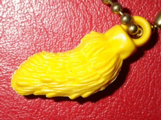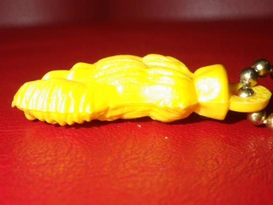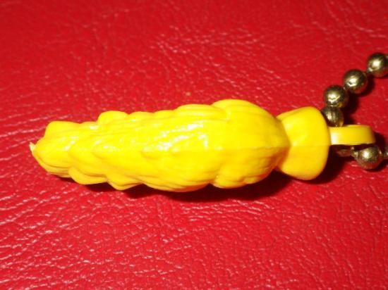 カラーはイエロー系、素材はプラスチック、サイズはチェーンを除いた全長のサイズで3.0cmくらいと小ぶりで可愛いサイズです♪