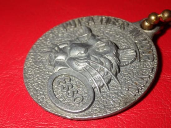 立体的なエンボス加工のメタル素材、メダル部分のサイズで縦:4.0cm×横幅:3.4cmくらい、当時のMT Vernon NYのボールチェーンが付いております♪