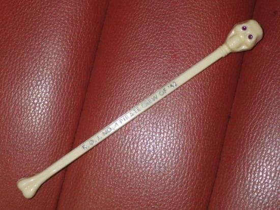 大変珍しい、フリーメイソン、ロイヤルオーダーオブジェスターズのCOOLなスカル・マドラー(カクテル等に刺してかき混ぜる棒)です♪