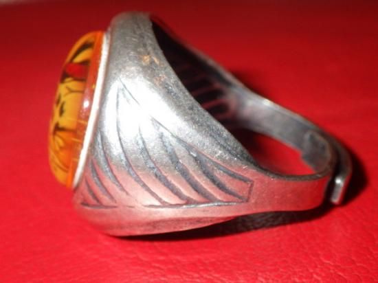 素材はブラスにシルバーメッキ、サイズは開閉して調節可でフリーサイズ、15号〜23号(指周り55.5mm〜63.9mm)くらいの方まで着用可能です◎♪