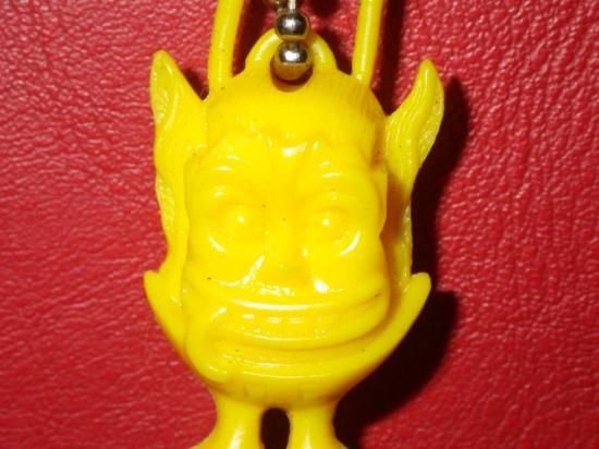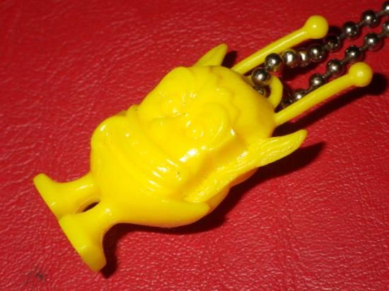 カラーは黄色/イエロー系、素材はプラスチック、サイズはチェーン除いた本体の身長で4cmくらい♪