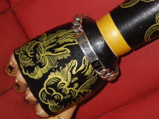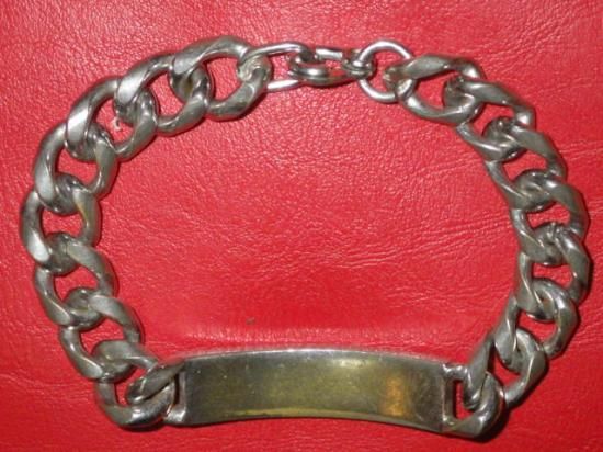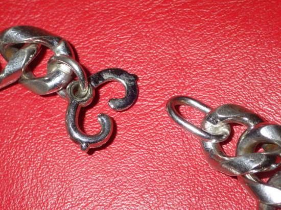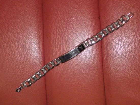 サイズは全長21cm、プレート部分の大きさは縦の幅1.1cm、横幅5.6cmくらい、シルバーカラーのメタル素材でずっしりと重量感がございます♪