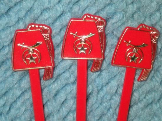 珍しい世界最大の秘密結社、フリーメイソン・シュライン・フェズハット型のマドラー(カクテル等に刺してかき混ぜる棒)3本セットです♪