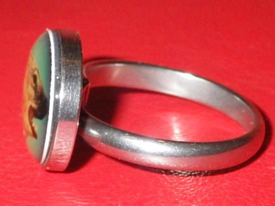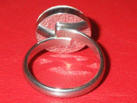 リングのサイズは13号(指周り53.4mm、開閉してある程度調節可)くらい(開閉してある程度調節可)、リング部分の素材はステンレススチール(こちらはビンテージではなく新品)、ドーム部分(90’Sの当時もの)の直径で1.4cmくらいです♪