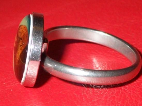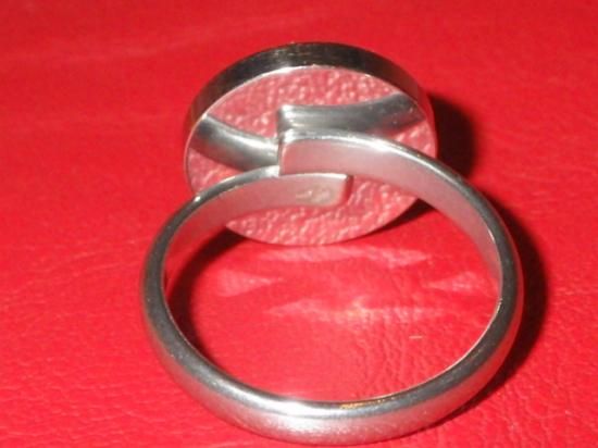 リングのサイズは13号(指周り53.4mm、開閉してある程度調節可)くらい、リング部分の素材はステンレススチール(こちらはビンテージではなく新品)、ドーム部分(90’Sの当時もの)の直径で1.4cmくらいです♪