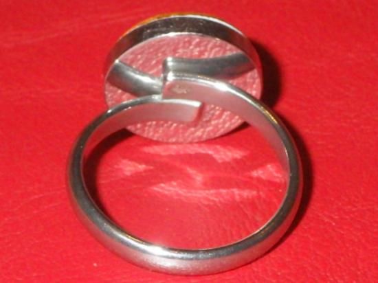リングのサイズは13号(指周り53.4mm、開閉してある程度調節可)くらい、リング部分の素材はステンレススチール(こちらはビンテージではなく新品)、ドーム部分(90’Sの当時もの)の直径で1.4cmくらいです♪